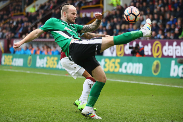 Vierasjoukkueen laitapuolustaja Bradley Wood...