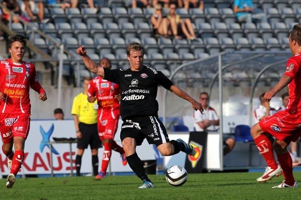 Ottelu käynnistyi kotijoukkue KuPS:n hallinnassa, mutta Lahden Valdrin Rashica oli lähellä maalintekoa...