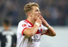 HSV voitti lauantaina Bundesliigan ottelussa Augsburgin maalein 1-0 kotikentällään. HSV:n maalin tehnyt Nicolai Müller riemuitsi voittomaaliaan karmivin seurauksin.