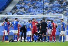 Valioliigan hallitseva mestari Liverpool joutui lauantaina pettymään, kun se jäi Brightonin vieraana 1-1-tasapeliin.