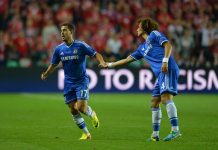 Chelsean johtomaalin teki vapaapotkusta keskuspuolustaja David Luiz. Chelsea sai vapaapotkun noin 25 metristä, kun Eden Hazardia rikottiin.