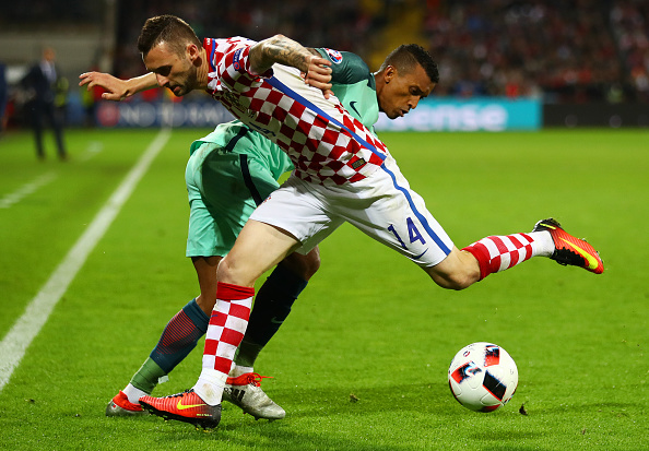Internazionalen Marcelo Brozovic iski Kroatialle molemmat maalit....