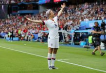 Ottelun jälkeen Rapinoe johti Tähtipaitojen tuuletuksia ja...