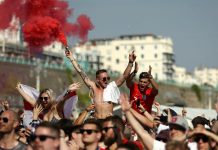Voitosta innostuneita kannattajia juhli välieräpaikkaa Lontoossa valtaamalla ruotsalaisen huonekalumyymälä...