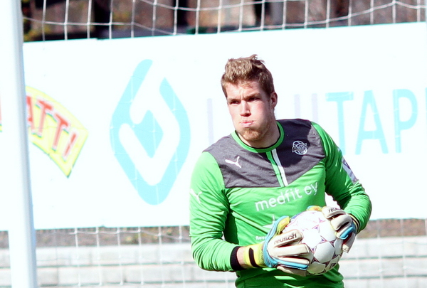 Suomalaisseuran maalivahti Saku-Pekka Sahlgren...