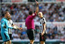 Shelvey, 25, nappasi punaisen kortin Valioliigan avauskierroksella, kun hän astui...