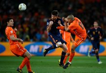 Yksi tämän vuosituhannen ehdottomista ikimuistoisimmista hetkistä MM-loppuotteluissa on se, kuinka Hollannin Nigel de Jong suoritti tyylipuhtaan kung fu -taklauksen Espanjan Xabi Alonson rintaan. Ottelun tuomari Howard Webb päästi de Jongin...