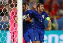 130 A-maaottelua pelannut kapteeni Darijo Srna oli myös lähellä maalintekoa, sillä hänen...