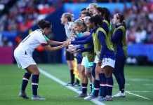 USA:n miesten maajoukkuelegenda Landon Donovan onnittelee naisten maailmanmestareita. Yhdysvaltojen maajoukkue juhli Ranskassa historiansa neljättä MM-kultaa.