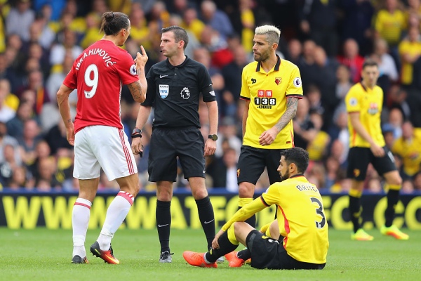 Manchester United kärsi jo kolmannen peräkkäisen tappionsa, kun Watford kaatoi punapaidat kotonaan 3-1. ManU-manageri Jose Mourinho kritisoi tuomarien toimintaa tappion jälkeen.