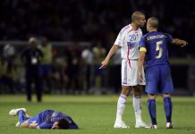 Yksi jalkapallon MM-kisahistorian ikonisimmista hetkistä nähtiin epäilemättä vuoden 2006 MM-loppuottelun jatkoajalla. Vastakkain olivat Ranska ja lopulta ottelun rangaistuspotkukilpailun jälkeen voittanut Italia.